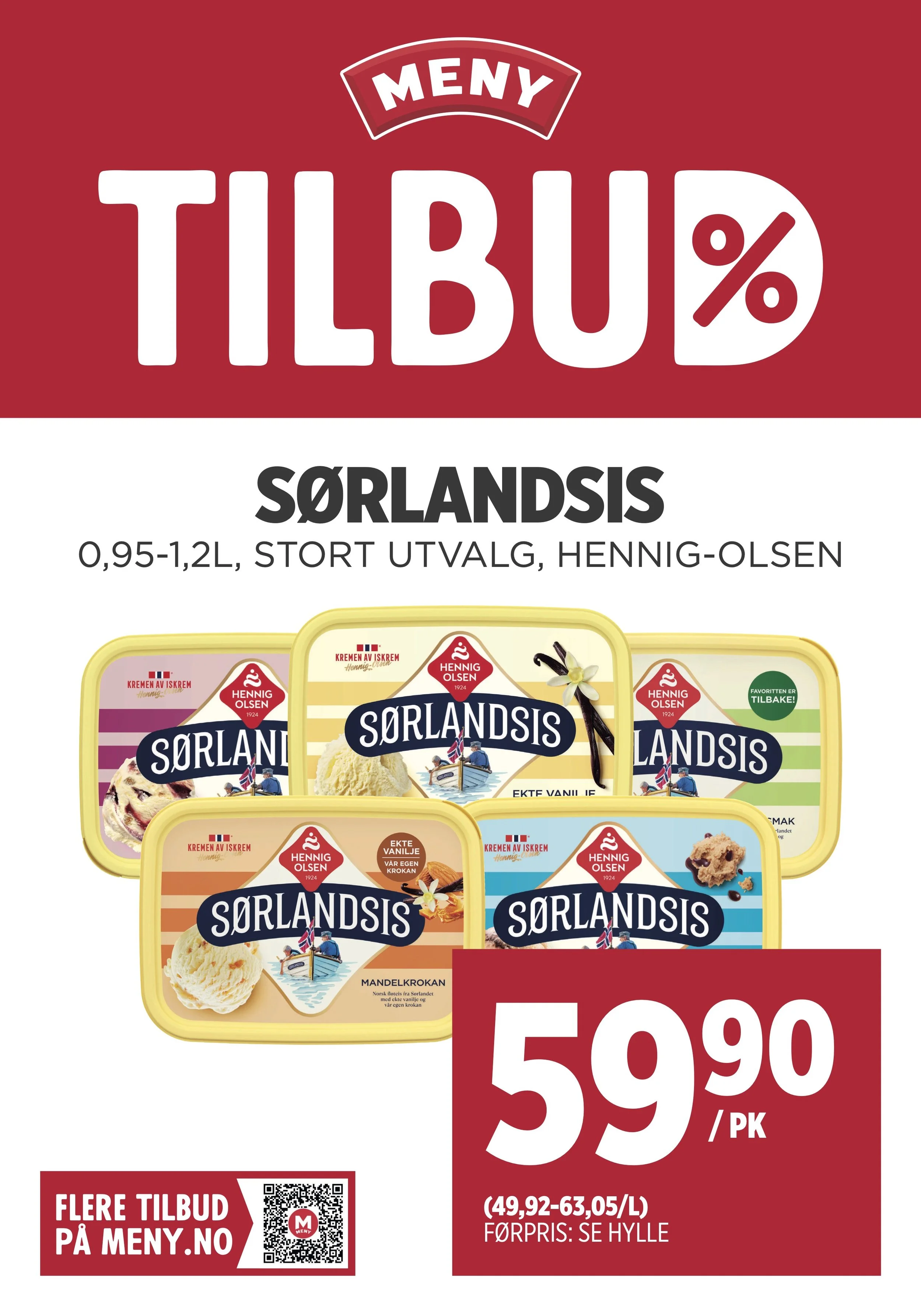 Sørlandsis til 59,90 /pk MENY Apr 8 Written By Eline Whist Bredesen Tilbud! 0,95-1,2L, Stort utvalg, Hennig-Olsen Eline Whist Bredesen